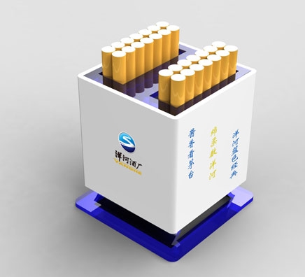 產品特點:此款藍色透頂的亞克力香煙展示架為源藝坊為客戶設計的新產品,底座為藍色亞克力透明板材,煙架身體部分則是亞克力瓷白板。整體色調以藍白為主,搭配簡約美觀大方,并絲印上香煙的品牌LOGO以及廣告語,讓香煙的展示起到了更好的宣傳作用。