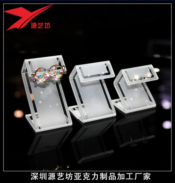 產品名稱:創意耳環展架規 格:大款:40*65*27*18mm 中款:40*52*29*19mm 小款:35*40*28*18mm(尺寸可定做)材 質:3mm亞克力透明板局部噴砂(全新料)工 藝:雕刻、熱彎、噴砂用 途:珠寶展示道具、耳釘展示架、耳環展示板定做