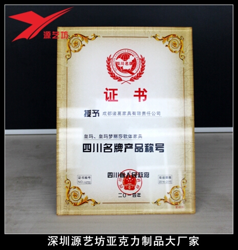 深圳亞克力制品廠家-源藝坊。專業亞克力高檔授權牌定制!(圖)采用5mm高透亞克力透明板,倒邊倒角,鉆石拋光形成面板,再使用3mm瓷白板粘雙面背膠噴繪,再把兩張板結合,后面再控制好角度,粘接一個支架,一個授權牌就形成。背膠噴繪粘接的時候會產生氣泡的,非專業人士不好控制,我們工廠的技工都是有著4-5年的亞克力制品經驗,做出來的質量相當好,沒有一丁點氣泡。亞克力授權牌耐用、不掉色、不發黃。很多大型公司都選用。當然,授權牌的做法有很多種,比如:UV打印的、銅版紙的、亞克力噴膠的等。我們公司都可以做的!我們支持來圖定做、來樣定做!歡迎來電咨詢:0755-23192901 |