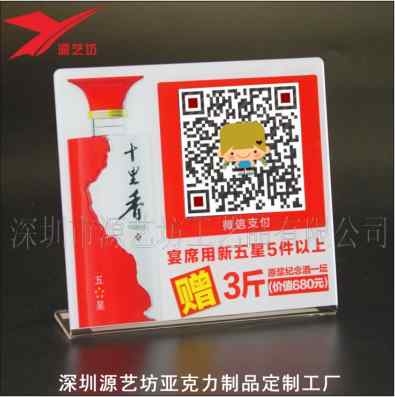 品牌白酒廣告牌定制,很多商家會開發一些小程序做些活動來吸引消費者,利用微信掃碼支付價格更加便宜等,市場上的廣告臺卡數不勝數,我們深圳源藝坊,專業臺卡制作14年,歡迎來電咨詢0755-23192901