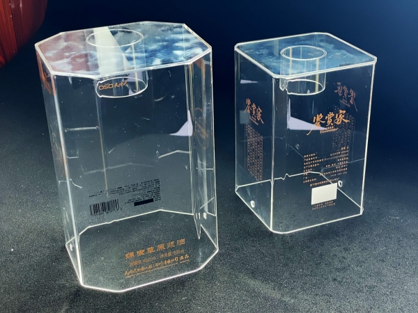 產品名稱:八角形亞克力酒包裝盒 透明罩子 規 格:200*200*280mm(尺寸可定做) 材 質:亞克力5mm透明板(國產全新料) 工 藝:切割、雕刻、拋光、CNC銑槽、火拋光 用 途:各種品牌白酒包裝盒 產品說明:本公司所有產品均為定做,沒有現貨!本公司支持亞克力材質:來圖定做、來樣定做!深圳前三亞克力制品加工大廠家,您值得信賴,我們的品質至上!團隊實力雄厚!價格優!