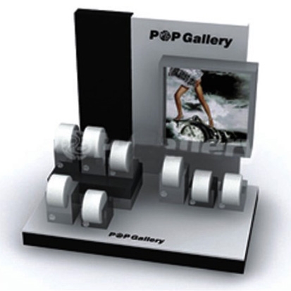 ZB-11型手表展示架采用優質亞克力材質制作而成,堅固耐用。ZB-11手表展示架采用黑白亞克力與白色亞克力板粘合成的展架座,板面絲印了展示品牌的LOGO(還可使用雕刻、鐳射等工藝制作),底板上鑲嵌著透明亞克力手表展架,這款亞克力手表展示架放于商場展柜中,在燈光的照射下,顯得更加的光彩奪目。