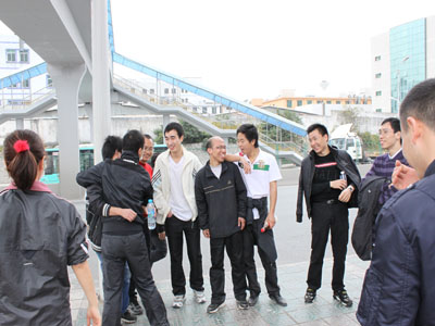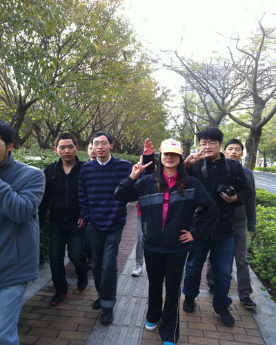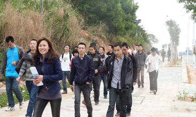 公司與工廠同事終于在臺灣工業區會合。(工廠同事9點30分從工廠出發往南山方向走,與我們公司同事在中途匯合,然后在折返一起回工廠。)