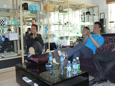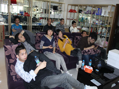 先到的同事在源藝坊工廠樣品間為堅持下來的同事鼓掌!