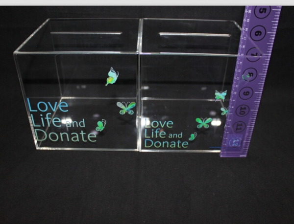 亞克力制品是最新代替玻璃制品的新型環保材料。相對玻璃笨重和不好塑性,亞克力就不一樣了,亞克力制品,可塑性強,可加工成多種款式,易著色,產品樣式豐富多彩,亞克力材質的比玻璃更加的輕便耐壓性強,即使摔在地方也并沒有那么容易碎掉。 就拿亞克力投票箱來說,亞克力投票箱由一級進口亞克力板材制作,材質晶瑩透亮,采用平板加工,折彎,粘合等工藝制作而成,給人眼前一亮,用在大場合絕對的有檔次。無論擺放在哪里都會展現其原有的光彩,另外側面印上企業的LOGO,可以用做促銷禮品。 亞克力俗稱有機玻璃,是一種聚酯高分子有機物,由于其突出穩定的性能被加工成好多生活中的產品,由于其高透性,比玻璃透明性強幾倍,所以制作的產品很美觀,易于加工,可塑性非常強,可以制作成很多新穎的造型,滿足不同消費者的需求,受眾面更廣,硬度高,耐磨耐腐蝕,可以長時間使用,不怕風吹日曬,所以使用很廣泛,不管在室內還是室外都可以使用,而且由于其一般環境下性能很穩定,不會發生任何改變,可以使用很長時間,長時間使用外觀效果還是跟新的一樣,所以用亞克力材質的捐款箱是很好的。
